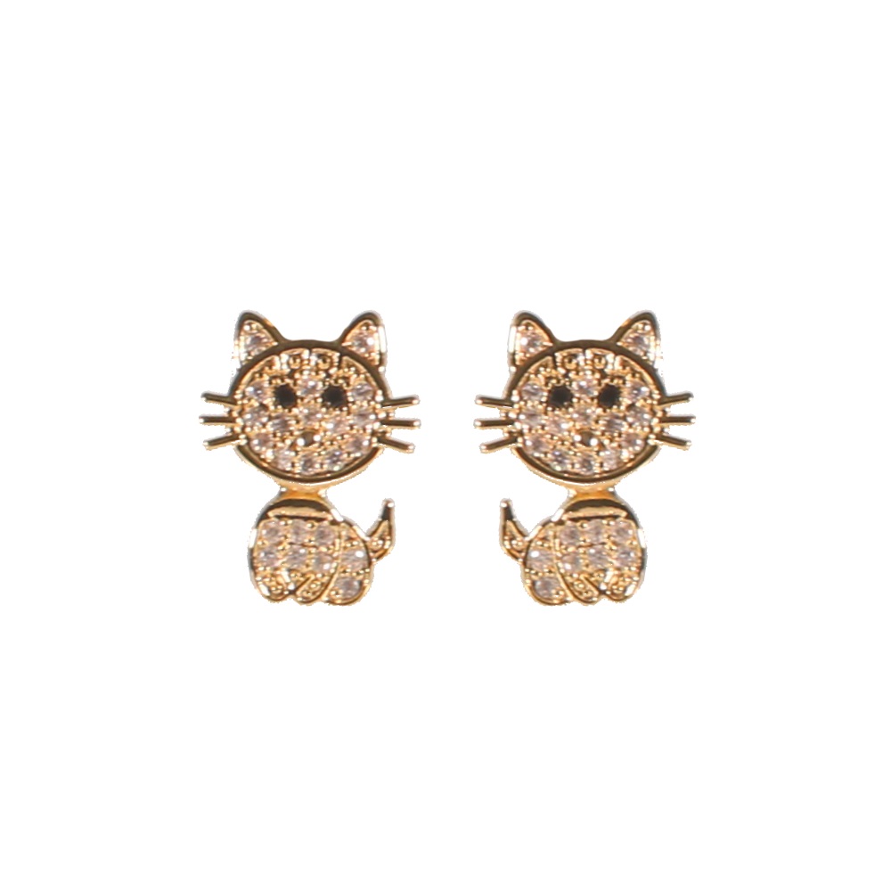 Boucles d'oreilles puces chat en métal doré et oxydes de zirconium.