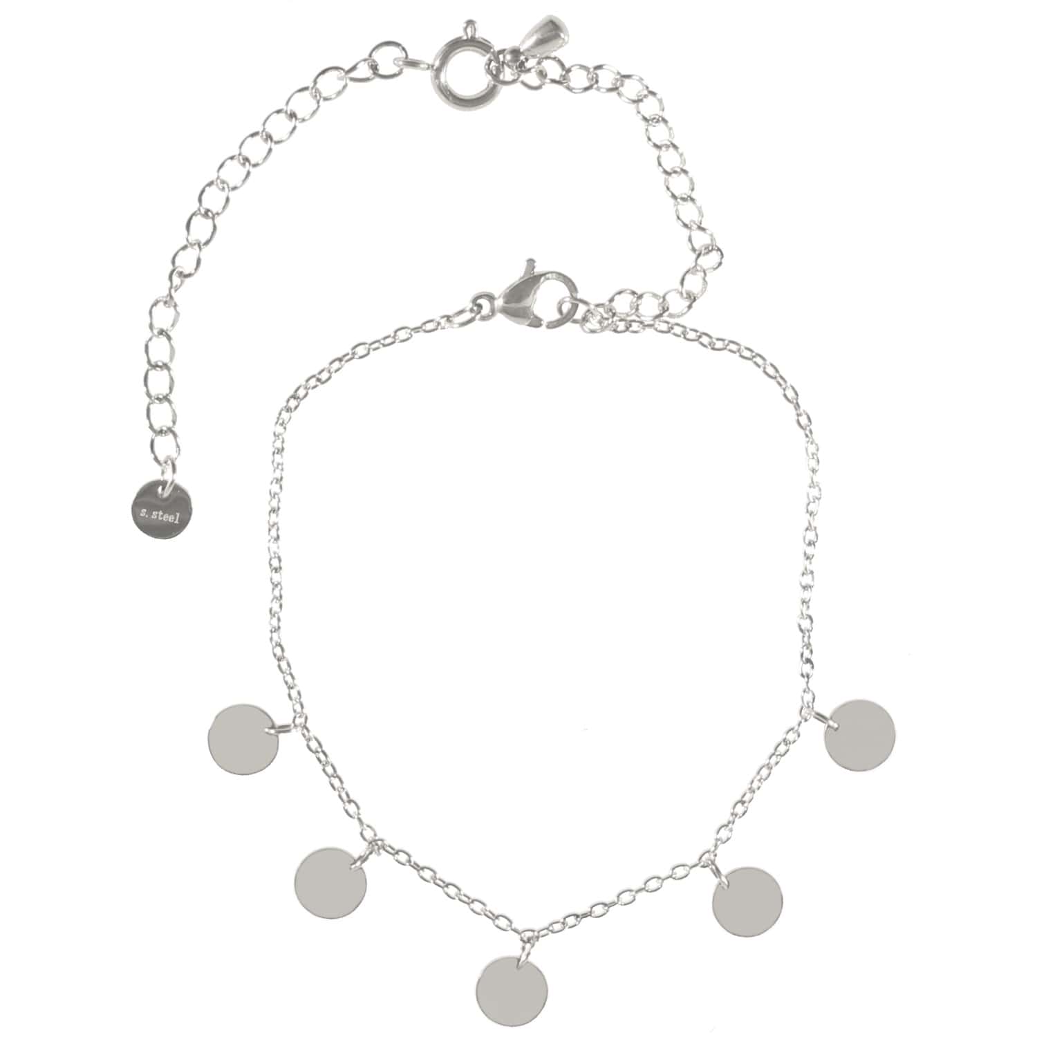 Description Bracelet avec pampilles en acier argenté. Le bracelet peut-être utilisé en chaîne de cheville grâce une extension. Cliquez sur une matière, un thème, une couleur ou une collection pour voir tous les articles associés.