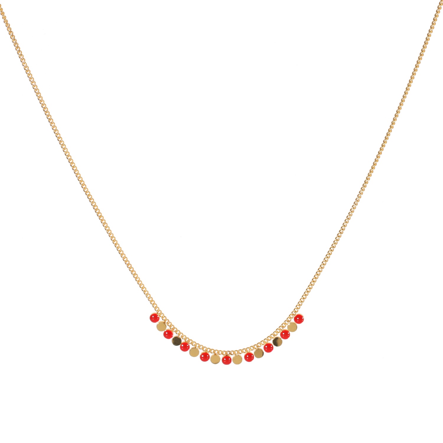 Description Collier composé de pampilles rondes en acier doré et émail de couleur rouge. Fermoir mousqueton avec 5 cm de rallonge pour l'adapter à votre envie. Cliquez sur une matière, un thème, une couleur ou une collection pour voir tous les articles associés.