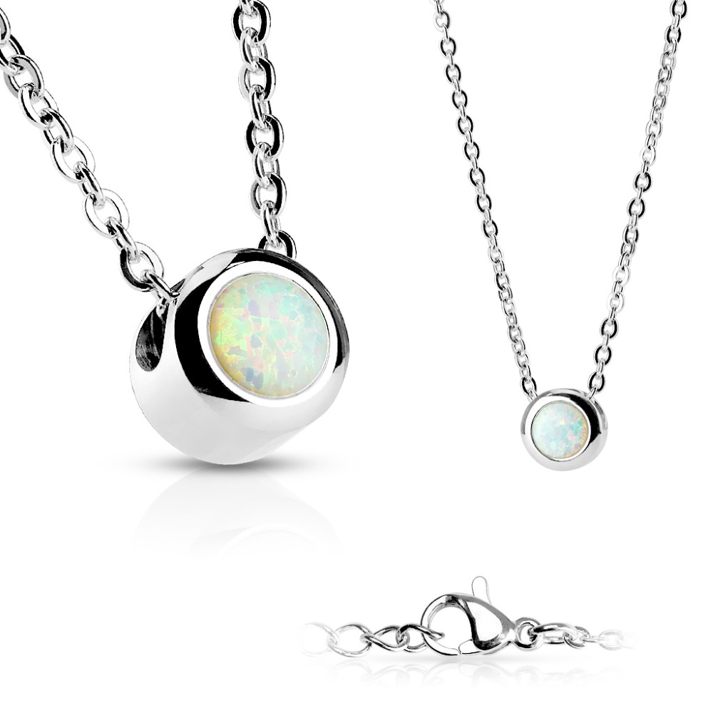 Description Collier en acier et pierre d'imitation Opale. Cliquez sur une matière, un thème, une couleur ou une collection pour voir tous les articles associés.