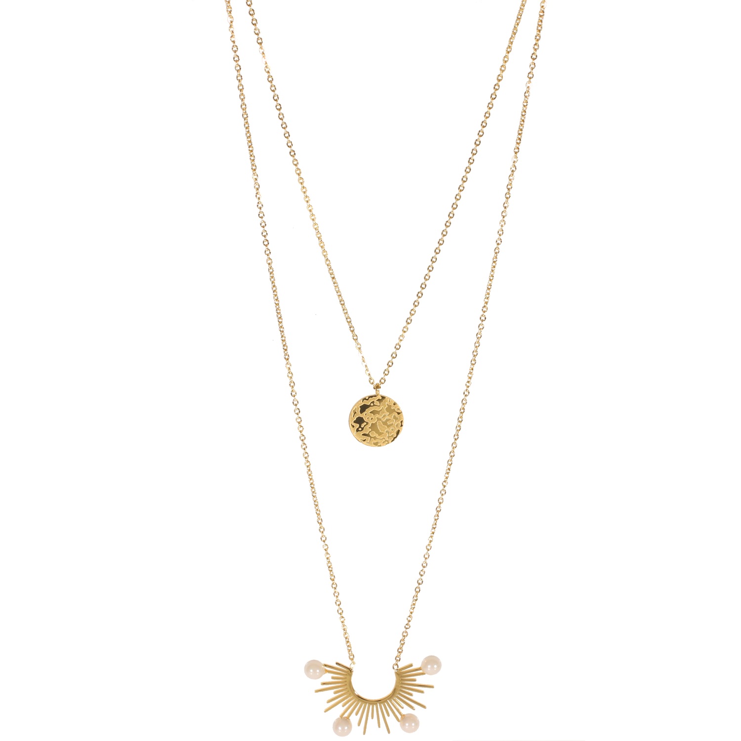 Description Collier deux rangs en acier doré et perles synthétiques. Cliquez sur une matière, un thème, une couleur ou une collection pour voir tous les articles associés.
