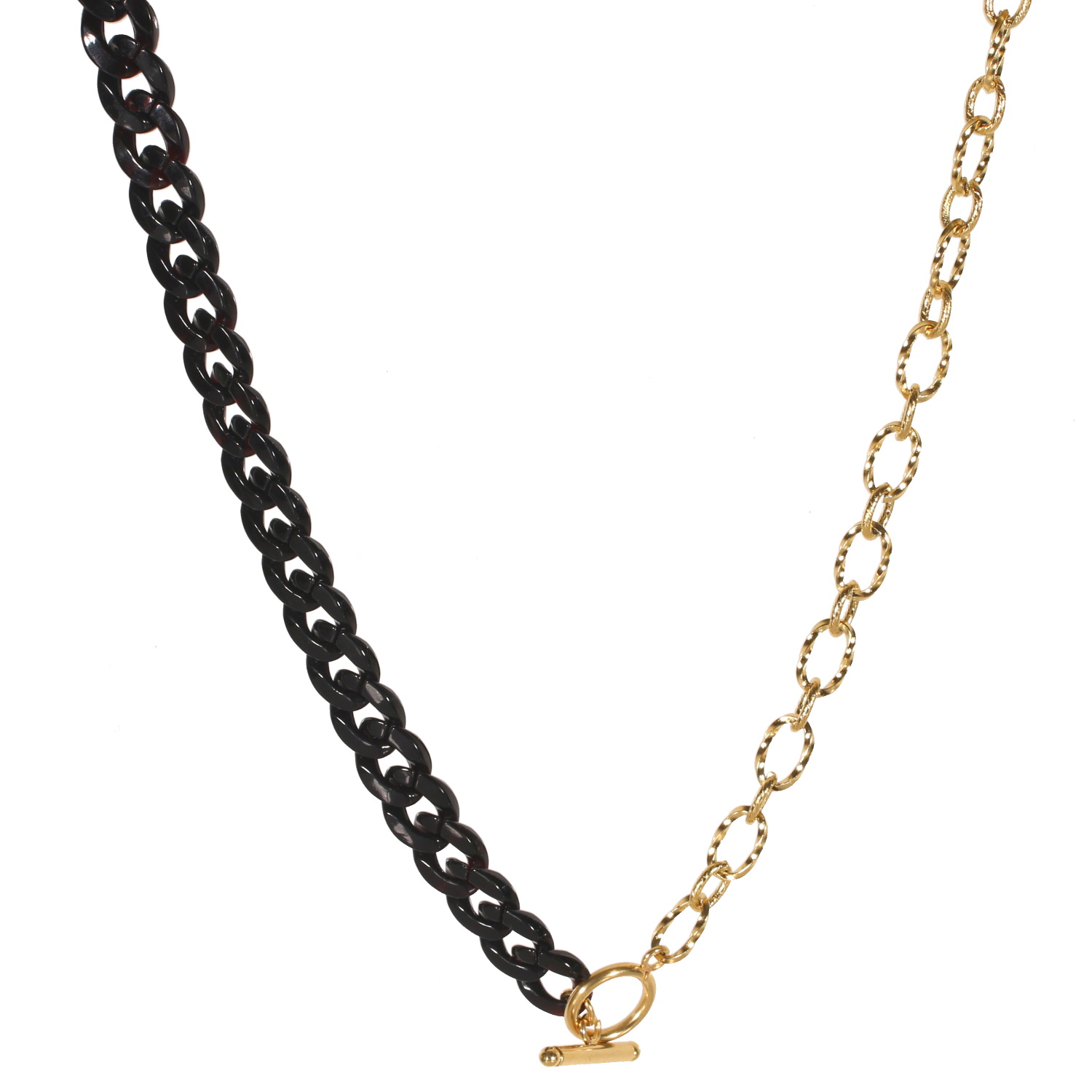Description Collier composé d'une chaîne avec fermoir cabillaud en acier doré et d'une chaîne en matière synthétique de couleur noire. Longueur 45 cm [Guide des tailles] Largeur 10 mm Matière(s) Acier , Plastique . L'acier utilisé dans la bijouterie existe sous plusieurs qualités. Nous utilisons principalement la qualité 316L, qualité qui est utilisée en chirurgie. Cet acier est donc inoxydable et reste très résistant. Fermoir Cabillaud Couleur(s) dominante(s) Doré , Noir Public Adolescent , Adulte . Genre Femme , Fille . Saison Indémodable . Cliquez sur une matière, un thème, une couleur ou une collection pour voir tous les articles associés.