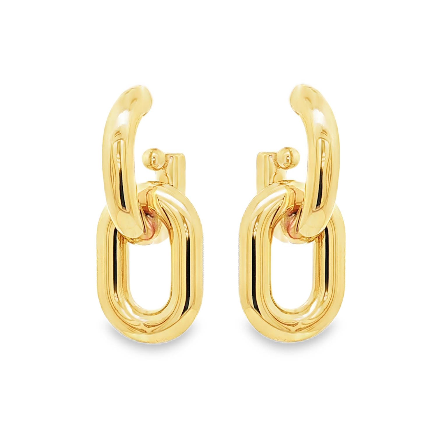 Description Rehaussez votre style avec ces boucles d'oreilles pendantes en acier doré. Leur design moderne et minimaliste apporte une touche d'élégance discrète à toute tenue. Parfaites pour une allure chic au quotidien ou pour compléter une tenue de soirée sophistiquée, ces boucles d'oreilles sont un ajout polyvalent et raffiné à votre collection de bijoux. Largeur 14 mm Hauteur 32 mm Matière(s) Acier . L'acier utilisé dans la bijouterie existe sous plusieurs qualités. Nous utilisons principalement la qualité 316L, qualité qui est utilisée en chirurgie. Cet acier est donc inoxydable et reste très résistant. Fermoir Tiges poussettes Couleur(s) dominante(s) Doré Public Adolescent , Adulte . Genre Femme , Fille . Saison Indémodable . Cliquez sur une matière, un thème, une couleur ou une collection pour voir tous les articles associés.