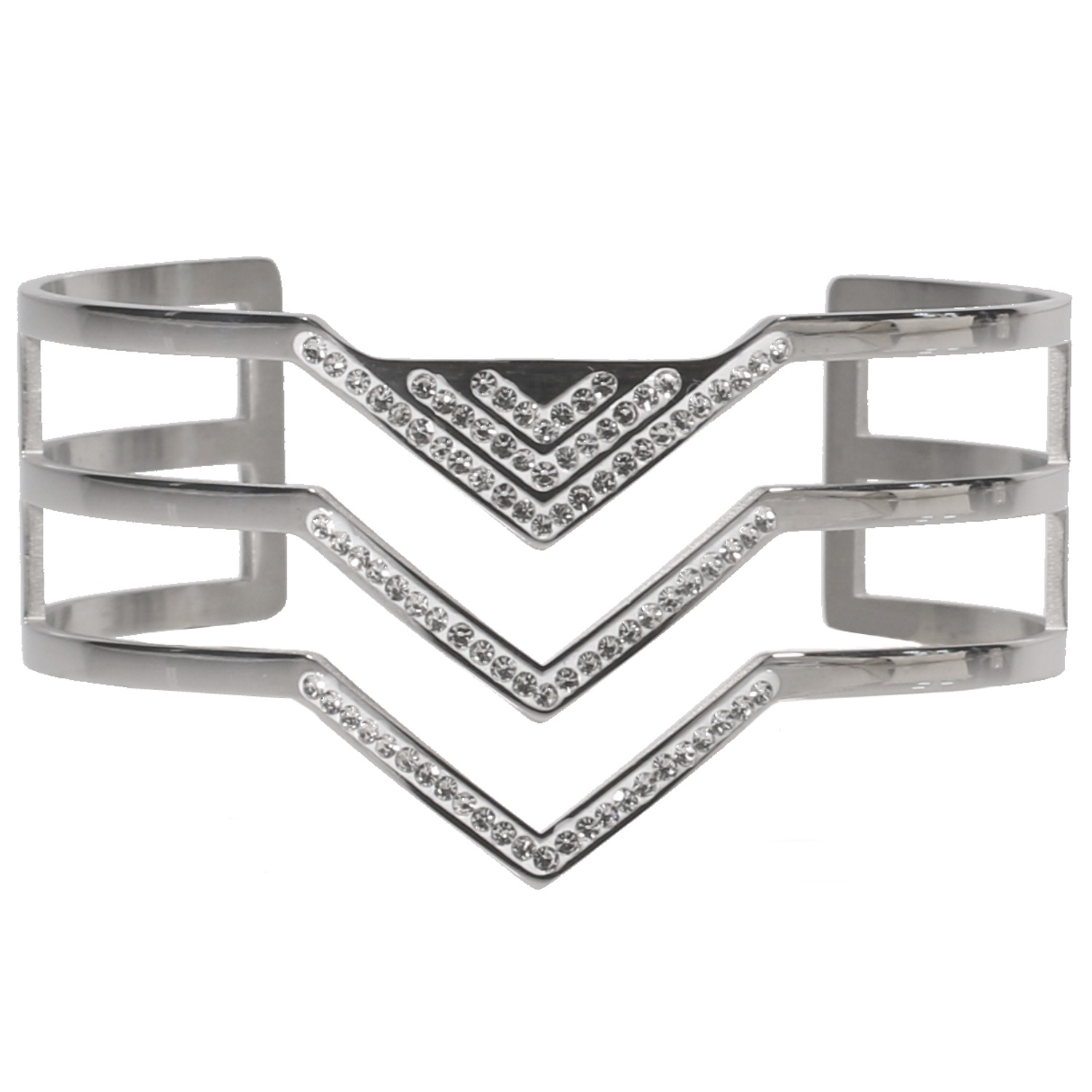 Description Bracelet manchette rigide en acier argenté et cristaux synthétiques. Largeur 31 mm Diamètre 58 mm [Guide des tailles] Matière(s) Acier , Verre . L'acier utilisé dans la bijouterie existe sous plusieurs qualités. Nous utilisons principalement la qualité 316L, qualité qui est utilisée en chirurgie. Cet acier est donc inoxydable et reste très résistant. Couleur(s) dominante(s) Argenté Public Adolescent , Adulte . Genre Femme , Fille . Saison Indémodable . Cliquez sur une matière, un thème, une couleur ou une collection pour voir tous les articles associés.