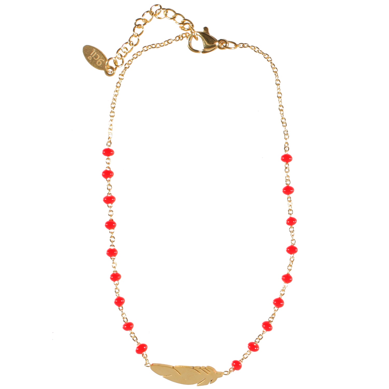 Description Chaîne de cheville avec plume en acier 316L doré et perles de couleur en émail. Cliquez sur une matière, un thème, une couleur ou une collection pour voir tous les articles associés.