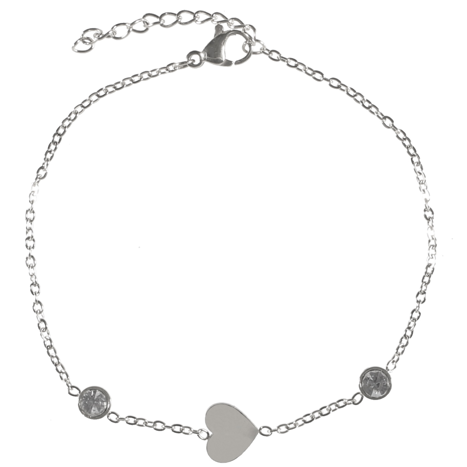 Description Bracelet composé d'une chaîne avec un cœur en acier argenté et de deux cristaux sertis clos. Fermoir mousqueton avec 3 cm de rallonge. Longueur 18+3 cm [Guide des tailles] Largeur 9 mm Matière(s) Acier , Verre . L'acier utilisé dans la bijouterie existe sous plusieurs qualités. Nous utilisons principalement la qualité 316L, qualité qui est utilisée en chirurgie. Cet acier est donc inoxydable et reste très résistant. Fermoir Mousqueton Couleur(s) dominante(s) Argenté Public Adolescent , Adulte . Genre Femme , Fille . Saison Indémodable . Thème(s) Amour . Cliquez sur une matière, un thème, une couleur ou une collection pour voir tous les articles associés.