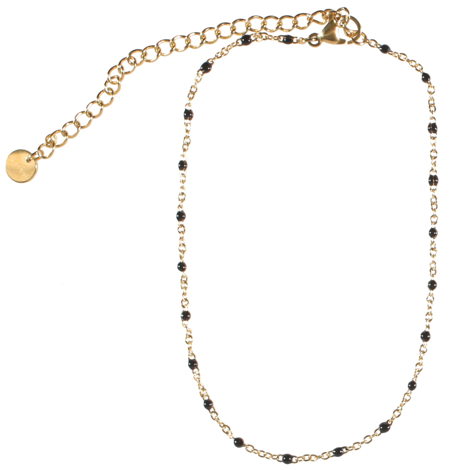 Description Bracelet chaîne de cheville composé d'une chaîne en acier doré et de perles en émail de couleur noir. Fermoir mousqueton avec 5 cm de rallonge. Cliquez sur une matière, un thème, une couleur ou une collection pour voir tous les articles associés.
