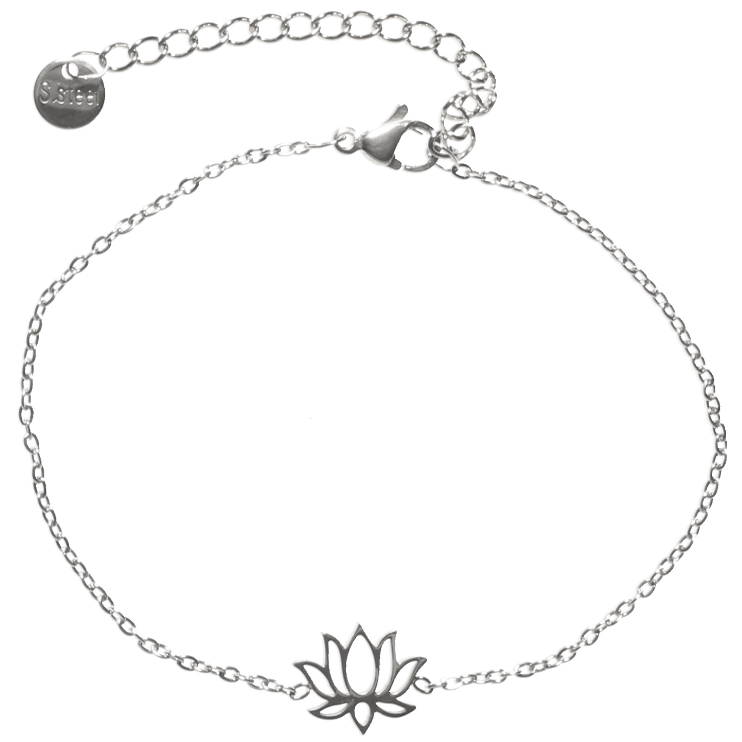 Description Bracelet composé d'une chaîne et d'une fleur de lotus en acier argenté. Fermoir mousqueton avec 5 cm. Cliquez sur une matière, un thème, une couleur ou une collection pour voir tous les articles associés.