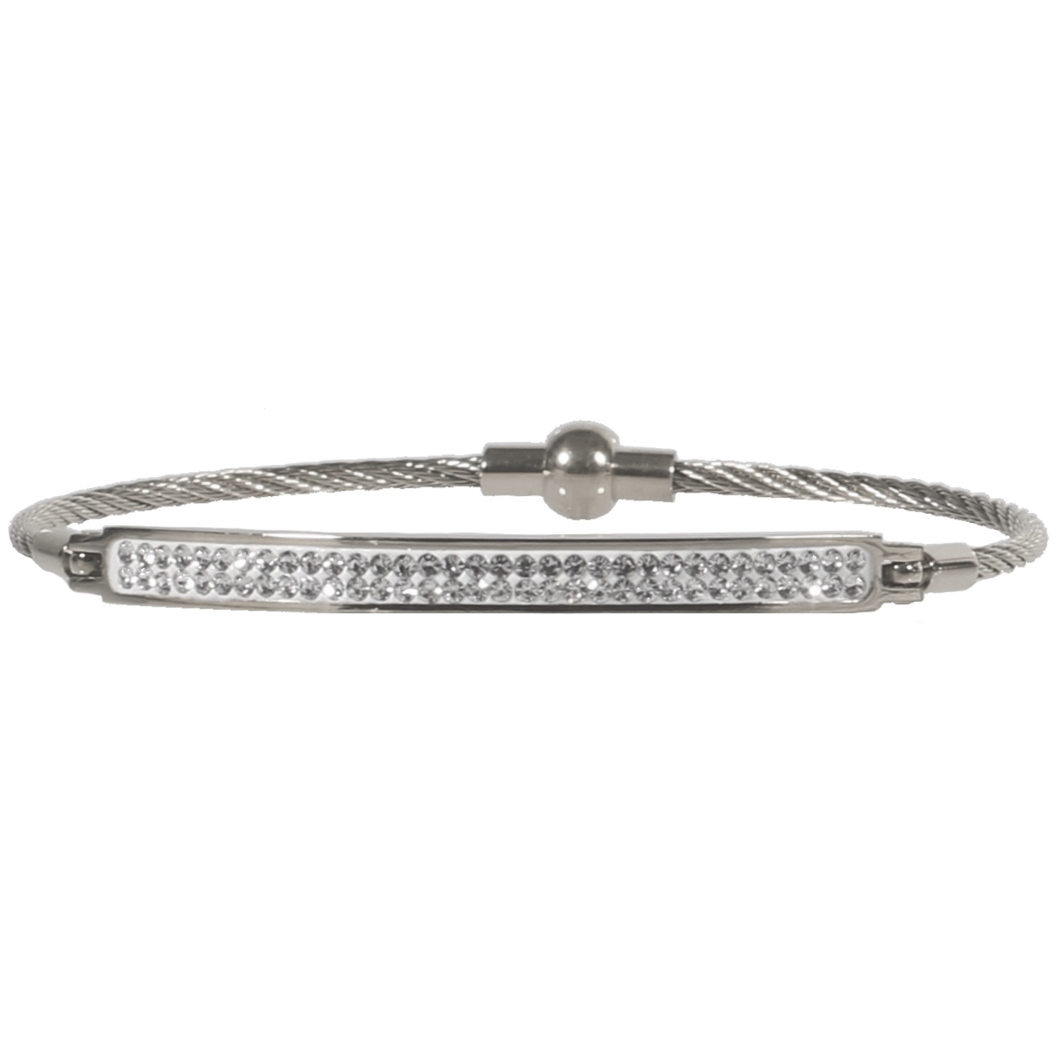 Bracelet jonc semi-rigide en acier argenté et verre.
