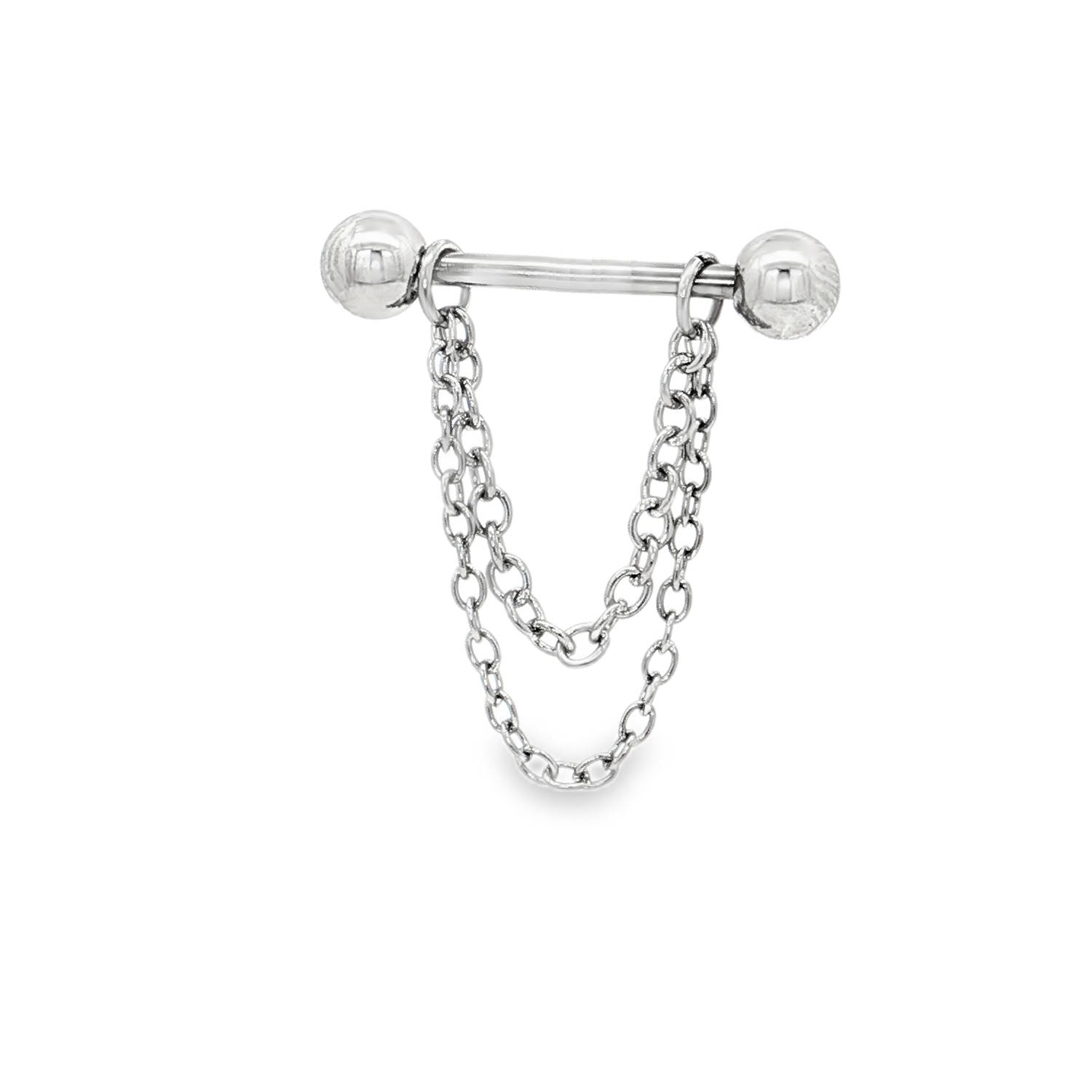 Description Rehaussez votre style avec ce piercing pour téton en acier argenté, unissant robustesse et raffinement. Le design présente un barbell classique orné de chaînes délicates, créant un contraste visuel saisissant. Longueur 14/23 mm [Guide des tailles] Hauteur 25 mm Diamètre 1.2 mm Matière(s) Acier . L'acier utilisé dans la bijouterie existe sous plusieurs qualités. Nous utilisons principalement la qualité 316L, qualité qui est utilisée en chirurgie. Cet acier est donc inoxydable et reste très résistant. Fermoir Autre Couleur(s) dominante(s) Argenté Public Adolescent , Adulte . Genre Femme , Fille . Saison Indémodable . Cliquez sur une matière, un thème, une couleur ou une collection pour voir tous les articles associés.