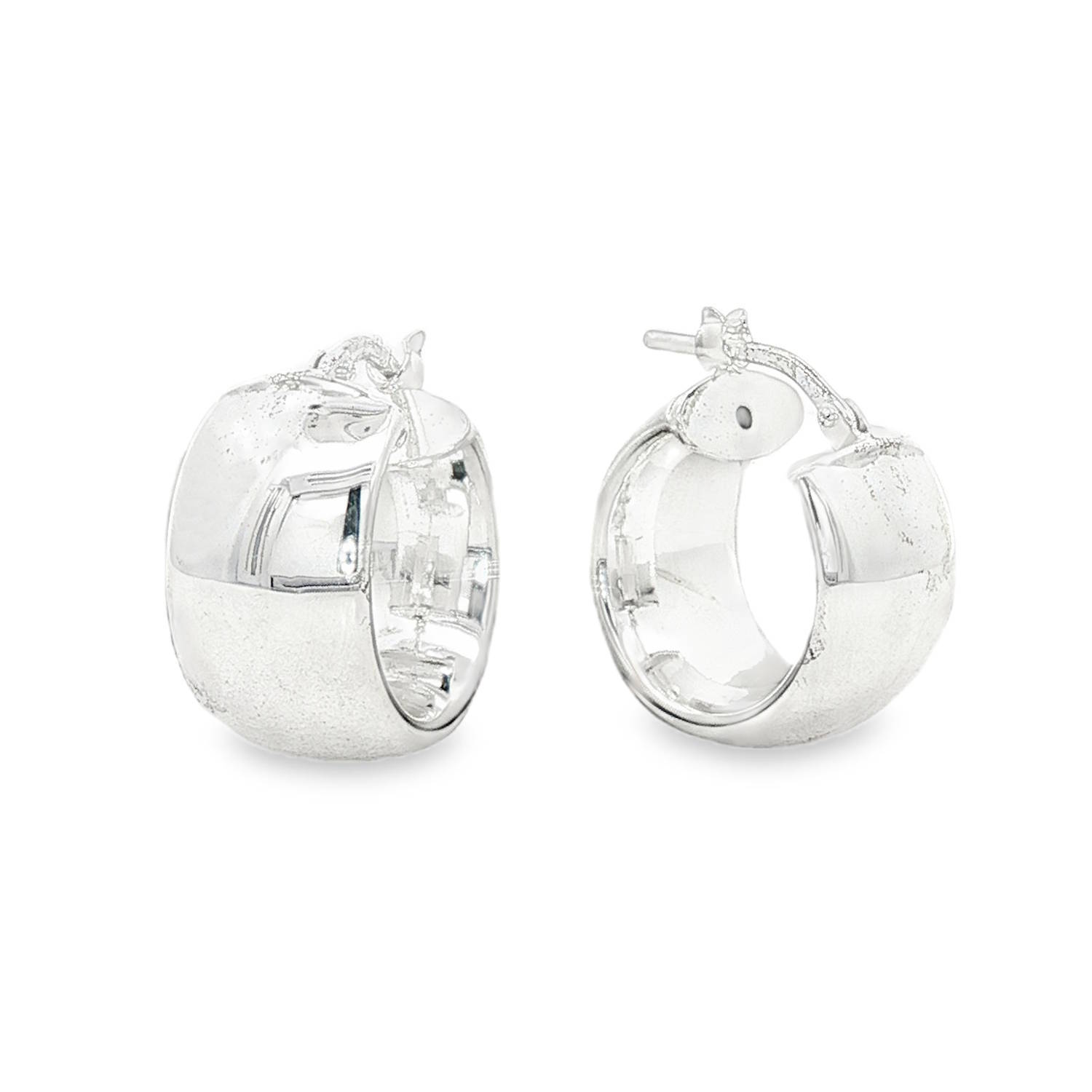 Ces créoles de type anneaux larges avec une forme bombée et généreuse sont en argent 925/000 offrant une brillance blanche et pure.