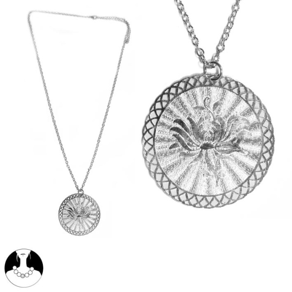Collier fantaisie en métal argenté.