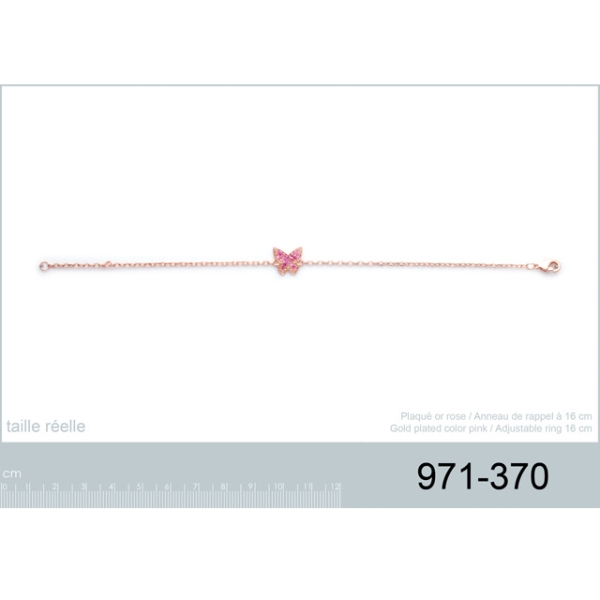 Bracelet en plaqué or rose et pierre synthétiques. Papillon  Adulte Animaux Enfant Femme Indémodable Fille