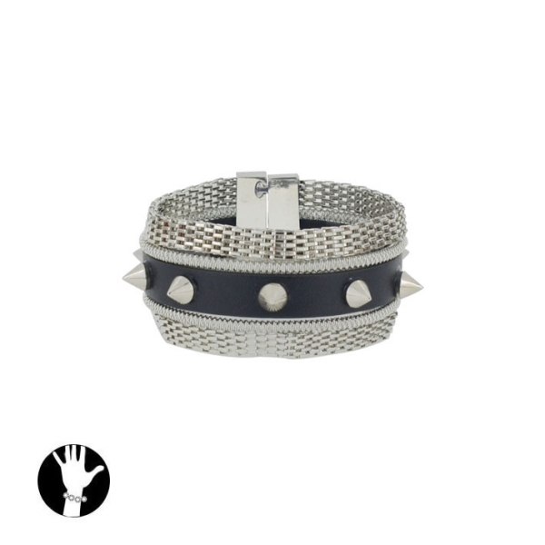 Description Bracelet fantaisie en métal argenté et imitation cuir. Cliquez sur une matière, un thème, une couleur ou une collection pour voir tous les articles associés.