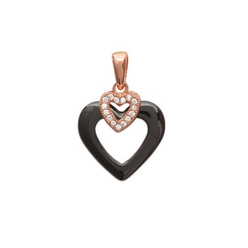 Pendentif en plaqué or rose, oxyde de zirconium et céramique. Coeur  Adulte Amour Femme Indémodable