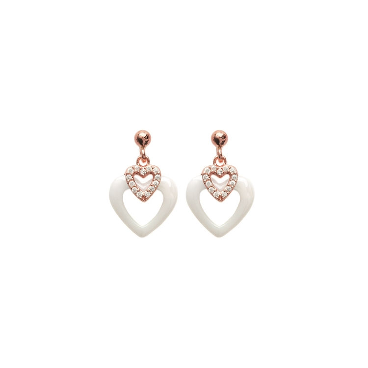 Boucles d'oreilles en plaqué or rose, oxyde de zirconium et céramique.