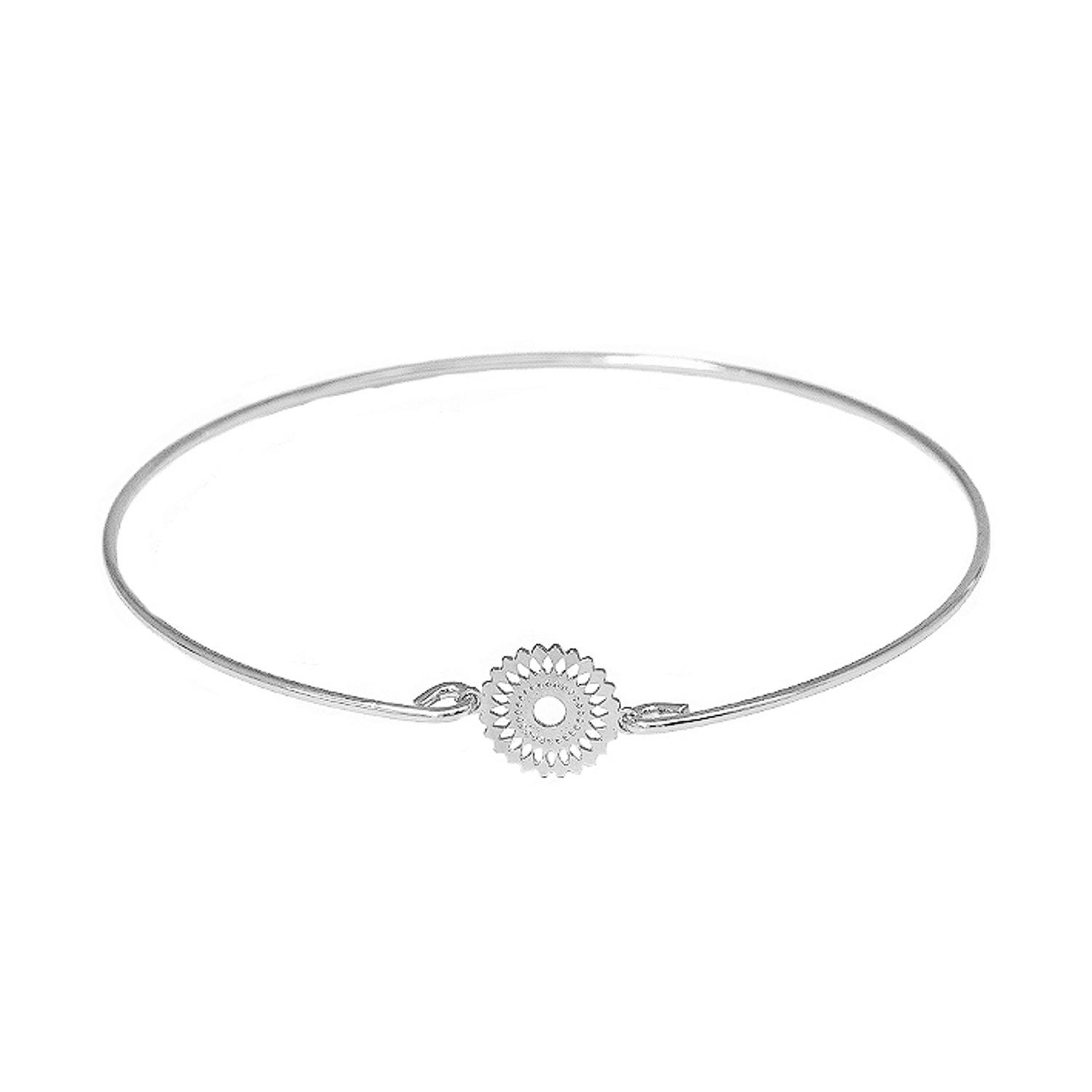 Bracelet fantaisie jonc rigide en métal argenté. Jonc Rigide Rond Soleil  Adolescent Adulte Femme Fille Indémodable