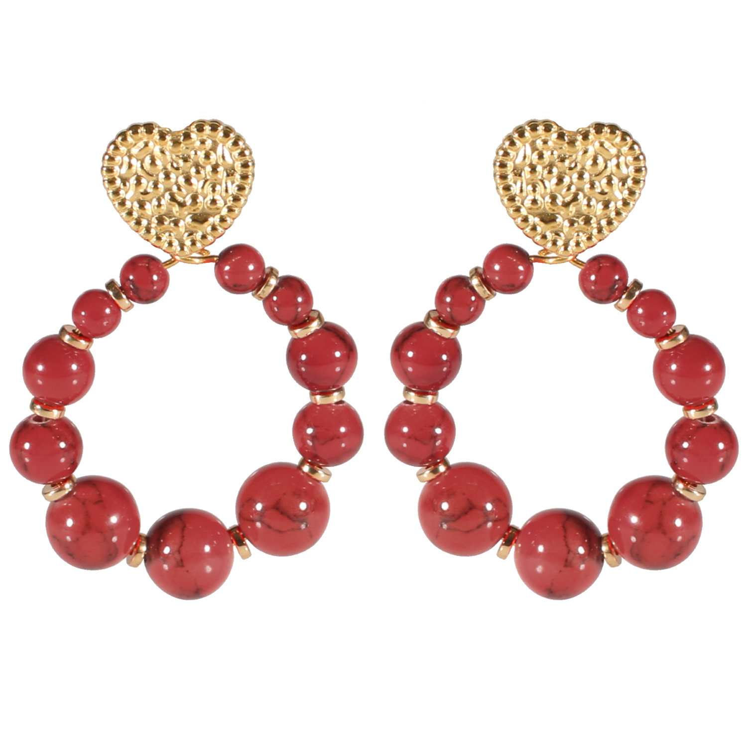 Description Boucles d'oreilles pendantes composées d'un cœur martelé en acier doré et un cercle ovale de perles de couleur rouge. Largeur 30 mm Hauteur 43 mm Matière(s) Acier , Rocaille . L'acier utilisé dans la bijouterie existe sous plusieurs qualités. Nous utilisons principalement la qualité 316L, qualité qui est utilisée en chirurgie. Cet acier est donc inoxydable et reste très résistant. Fermoir Tiges poussettes Couleur(s) dominante(s) Doré , Rouge Public Adolescent , Adulte . Genre Femme , Fille . Saison Eté . Thème(s) Amour . Cliquez sur une matière, un thème, une couleur ou une collection pour voir tous les articles associés.