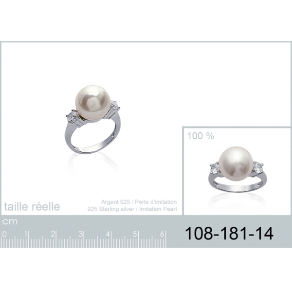 Bague en argent 925/000 rhodié et perle d'imitation.
