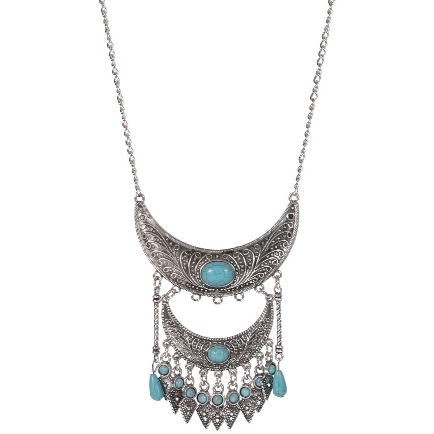 Collier fantaisie en métal argenté vieilli et rocaille.