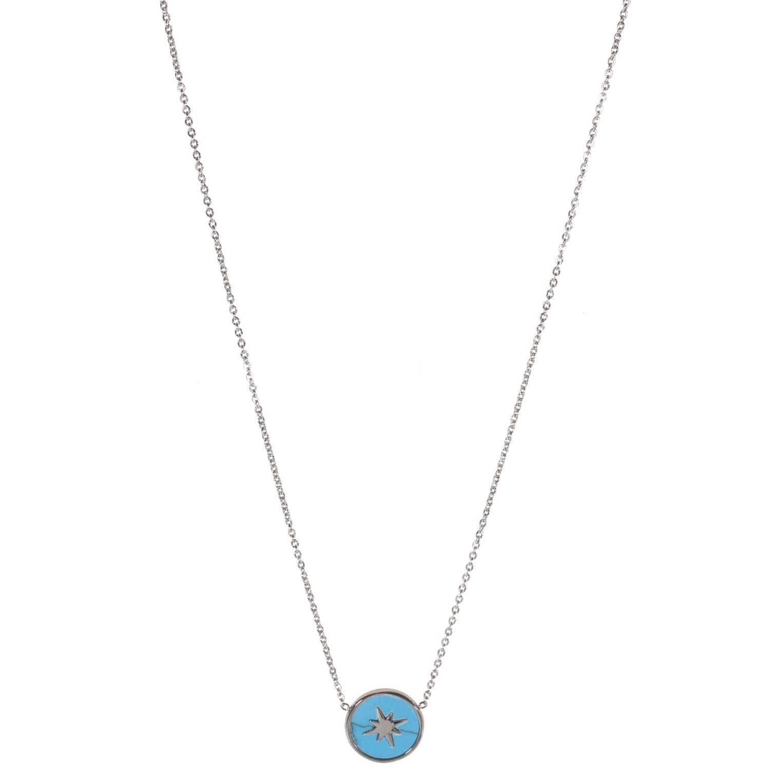 Description Collier avec pendentif en acier argenté et pierre de couleur. Cliquez sur une matière, un thème, une couleur ou une collection pour voir tous les articles associés.