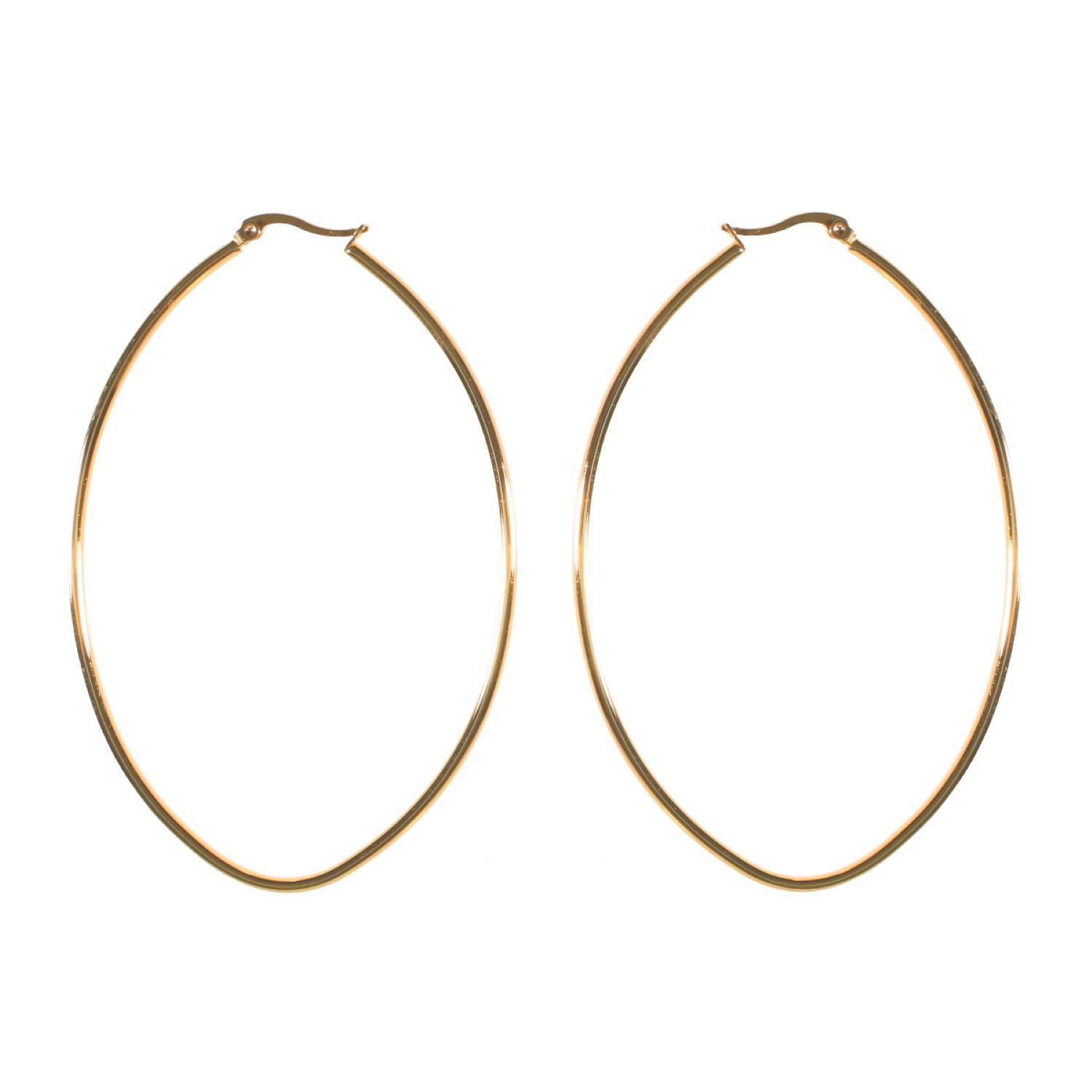 Description Boucles d'oreilles créoles de forme ovale en acier doré. Largeur 55 mm Hauteur 85 mm Matière(s) Acier . L'acier utilisé dans la bijouterie existe sous plusieurs qualités. Nous utilisons principalement la qualité 316L, qualité qui est utilisée en chirurgie. Cet acier est donc inoxydable et reste très résistant. Fermoir Charnière Couleur(s) dominante(s) Doré Public Adolescent , Adulte . Genre Femme , Fille . Saison Indémodable . Cliquez sur une matière, un thème, une couleur ou une collection pour voir tous les articles associés.