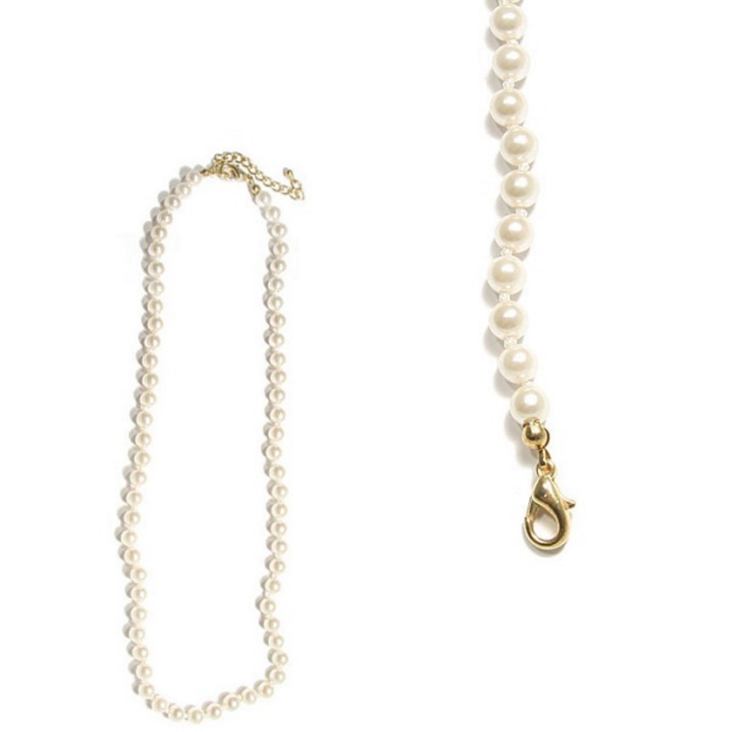 Description Collier fantaisie en métal doré et perles couleur crème. Fermoir mousqueton. Cliquez sur une matière, un thème, une couleur ou une collection pour voir tous les articles associés.