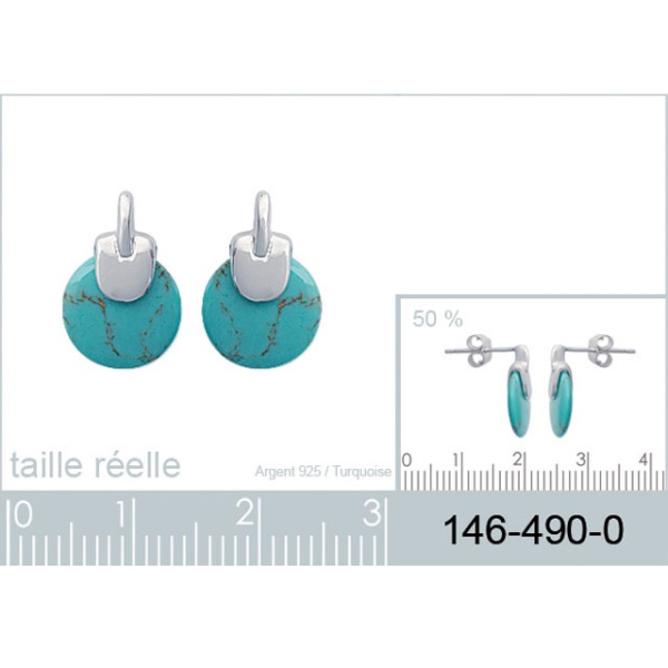 Boucles d'oreilles en argent 925/000 rhodié et turquoise.
