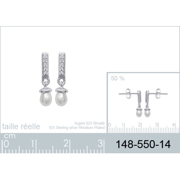 Boucles d'oreilles en argent 925/000 rhodié, oxyde de zirconium et perles d'eau douce (BIWA).