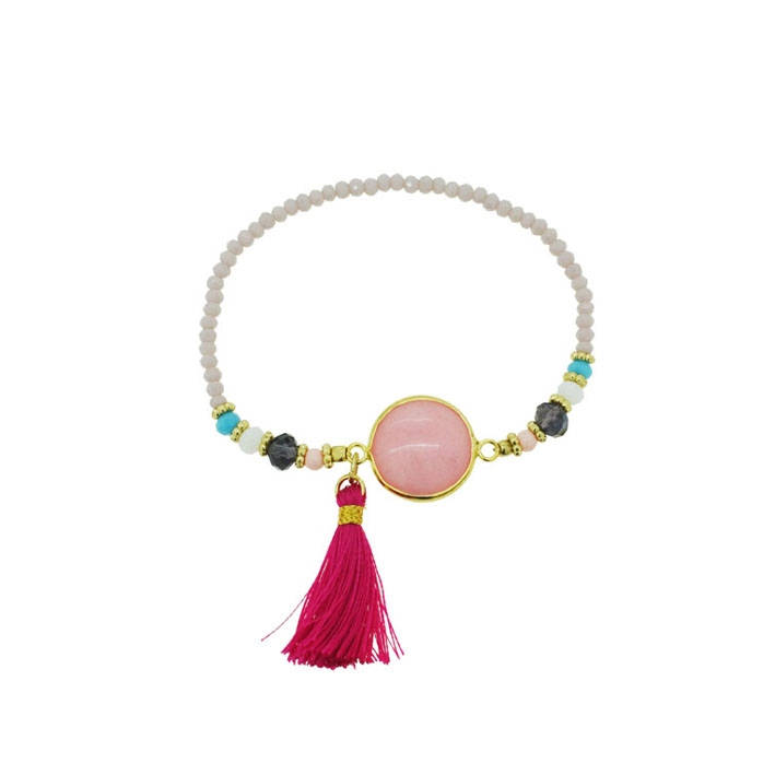 Description Bracelet fantaisie en métal doré, textile, rocaille, verre et pierre naturelle. Cliquez sur une matière, un thème, une couleur ou une collection pour voir tous les articles associés.