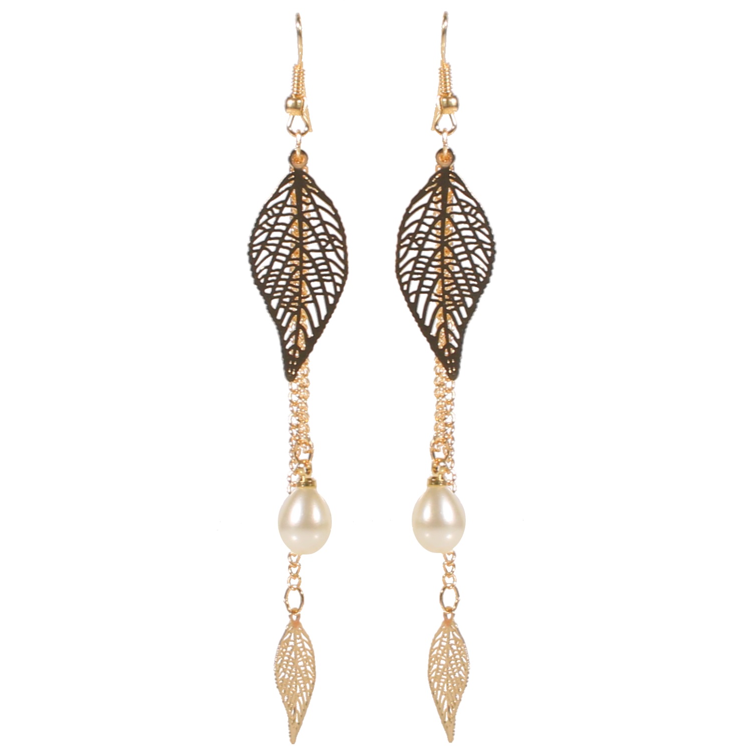 Boucles d'oreilles fantaisie en métal doré et perles synthétiques