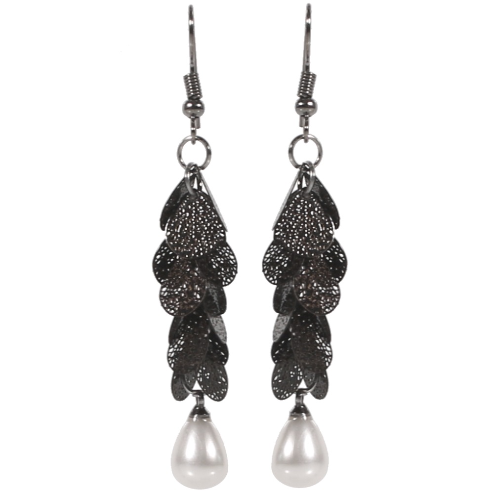 Boucles d'oreilles fantaisie en métal peint et perles synthétiques.