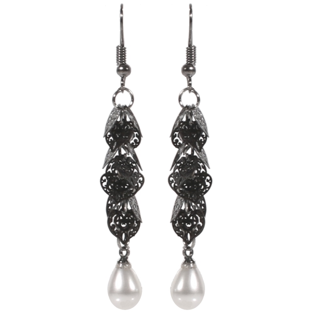 Boucles d'oreilles fantaisie en métal peint et perles synthétiques.