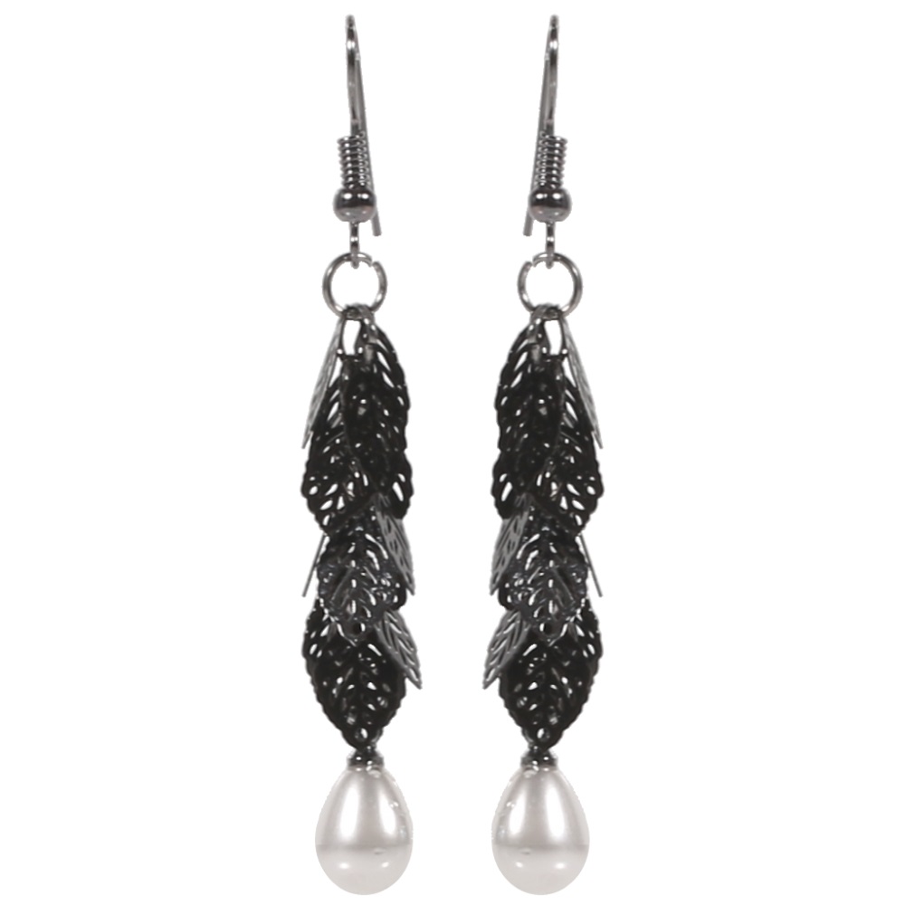 Boucles d'oreilles fantaisie en métal peint et perles synthétiques.