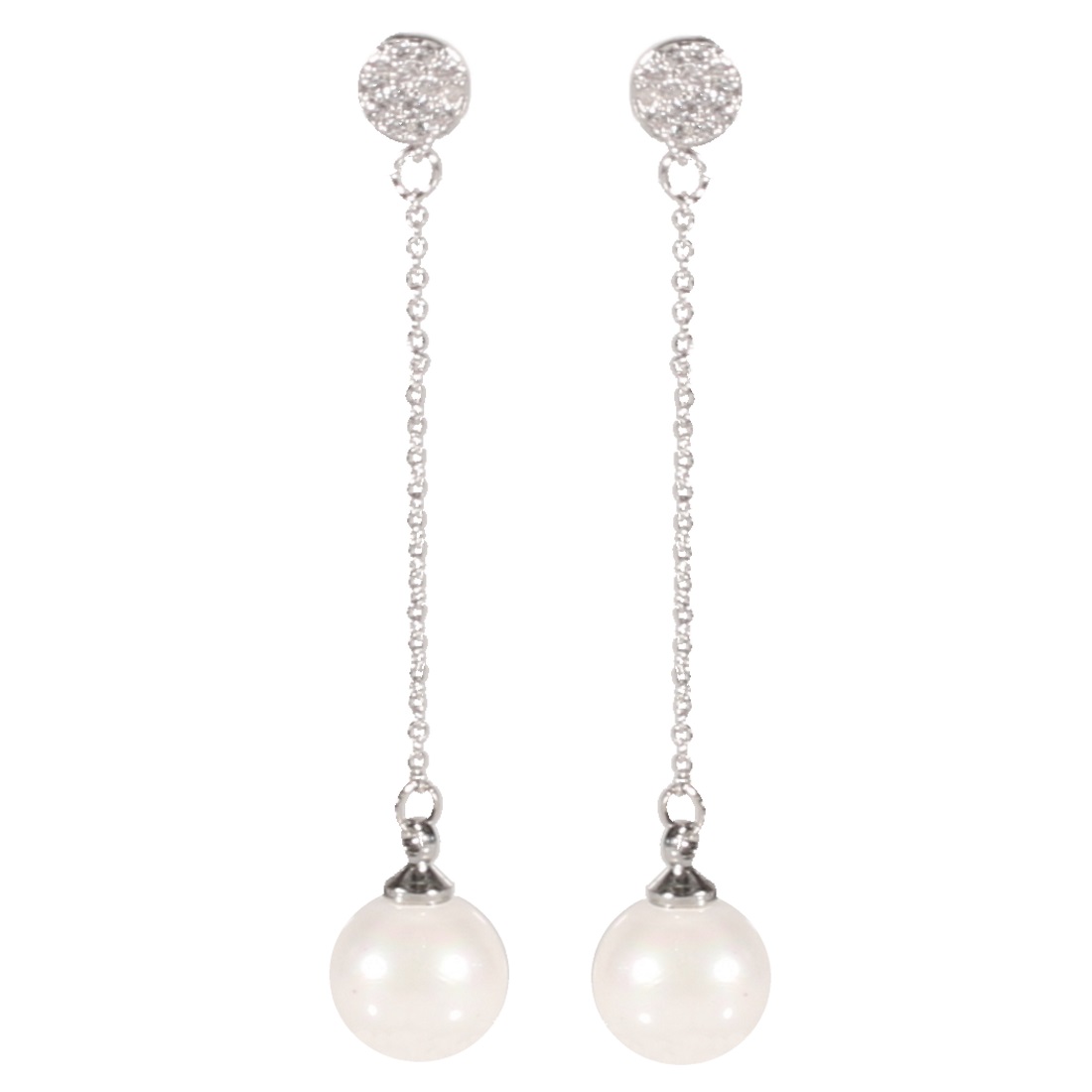Boucles d'oreilles fantaisie pendantes PearlAttitude en métal argenté, cristaux synthétiques et perles synthétiques.