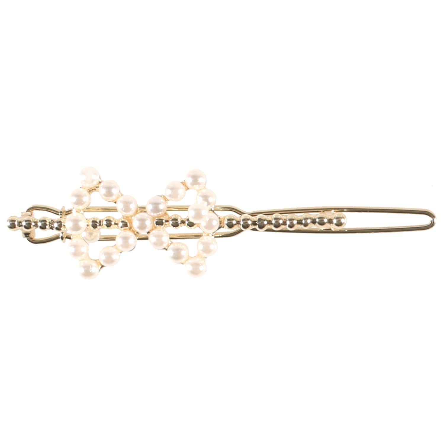 Description Pince pour cheveux en métal doré et nœud papillon en perles synthétiques. Cliquez sur une matière, un thème, une couleur ou une collection pour voir tous les articles associés.