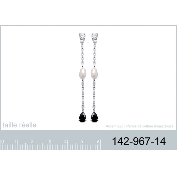 Boucles d'oreilles en argent 925/000 rhodié et perles d'eau douce.