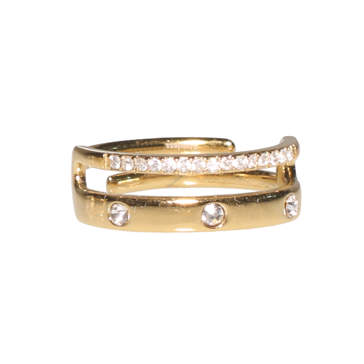 Description Bague double rangs en acier doré pavée de strass. Taille ajustable. Largeur 7 mm Matière(s) Acier , Verre . L'acier utilisé dans la bijouterie existe sous plusieurs qualités. Nous utilisons principalement la qualité 316L, qualité qui est utilisée en chirurgie. Cet acier est donc inoxydable et reste très résistant. Couleur(s) dominante(s) Doré Public Adolescent , Adulte . Genre Femme , Fille . Saison Indémodable . Cliquez sur une matière, un thème, une couleur ou une collection pour voir tous les articles associés.