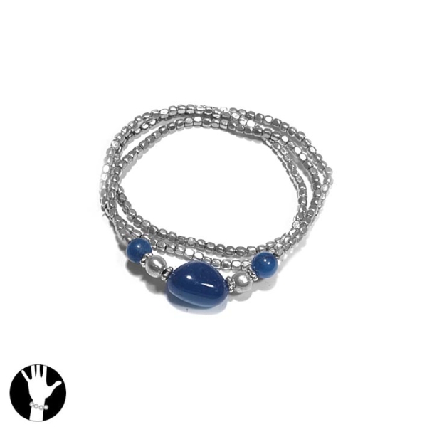 Bracelet fantaisie en métal argenté et pierres naturelles.