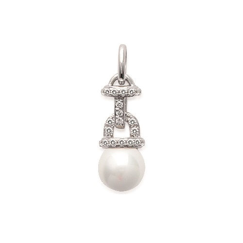 Pendentif en argent 925/000 rhodié, oxyde de zirconium et perle d'imitation.