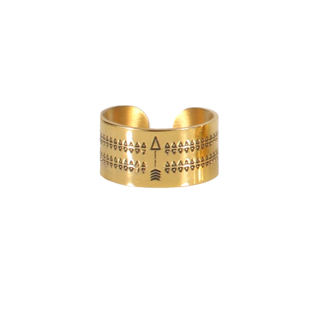 Description Bague avec gravures Indian spirit en acier doré. Taille ajustable. Cliquez sur une matière, un thème, une couleur ou une collection pour voir tous les articles associés.