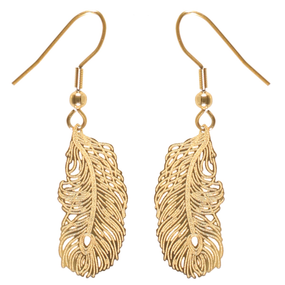 Description Boucles d'oreilles pendantes plume en acier doré. Largeur 12 mm Hauteur 42 mm Matière(s) Acier . L'acier utilisé dans la bijouterie existe sous plusieurs qualités. Nous utilisons principalement la qualité 316L, qualité qui est utilisée en chirurgie. Cet acier est donc inoxydable et reste très résistant. Fermoir Crochets Couleur(s) dominante(s) Doré Public Adolescent , Adulte . Genre Femme , Fille . Saison Indémodable . Thème(s) Nature . Cliquez sur une matière, un thème, une couleur ou une collection pour voir tous les articles associés.