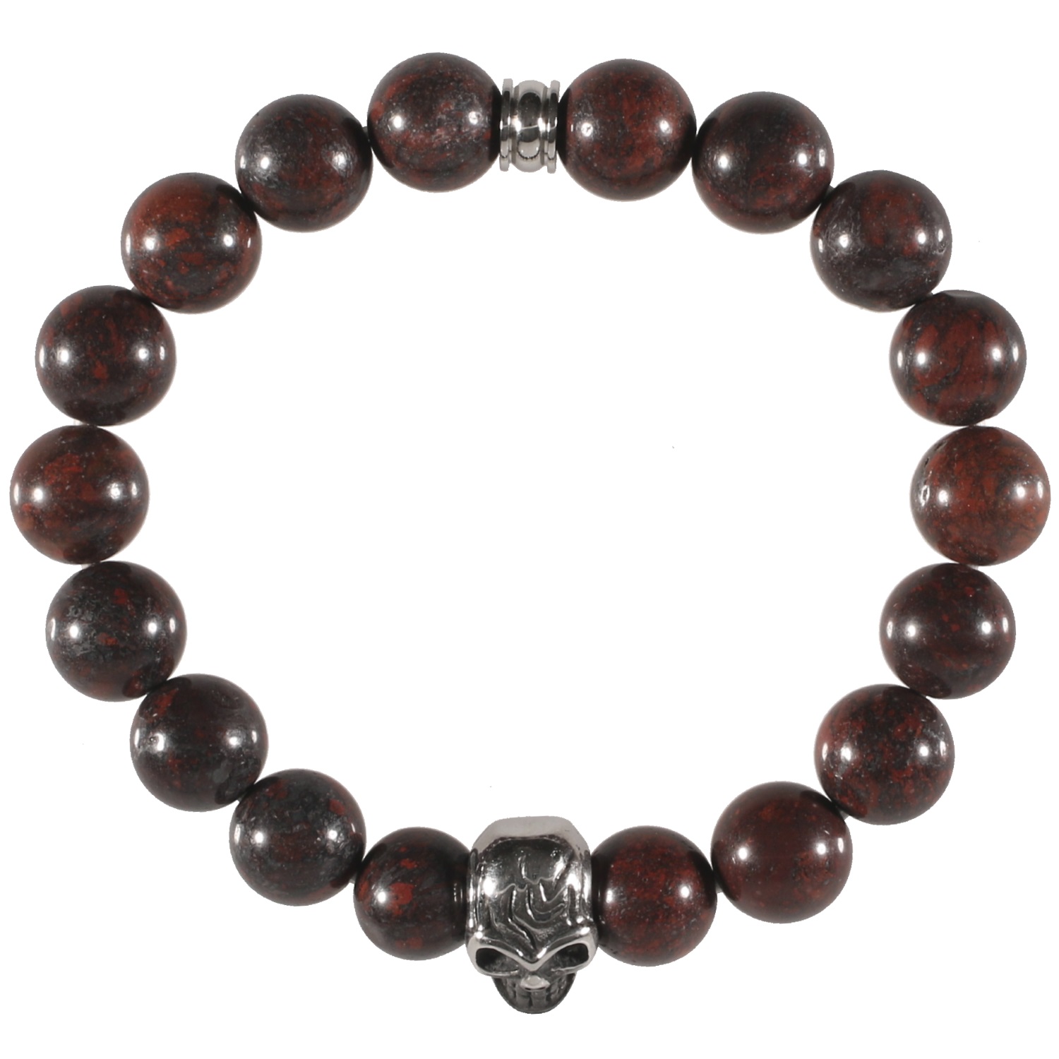 Description Bracelet boules fantaisie élastique avec tête de mort en métal argenté et perles en pierre naturelle de couleur. Cliquez sur une matière, un thème, une couleur ou une collection pour voir tous les articles associés.