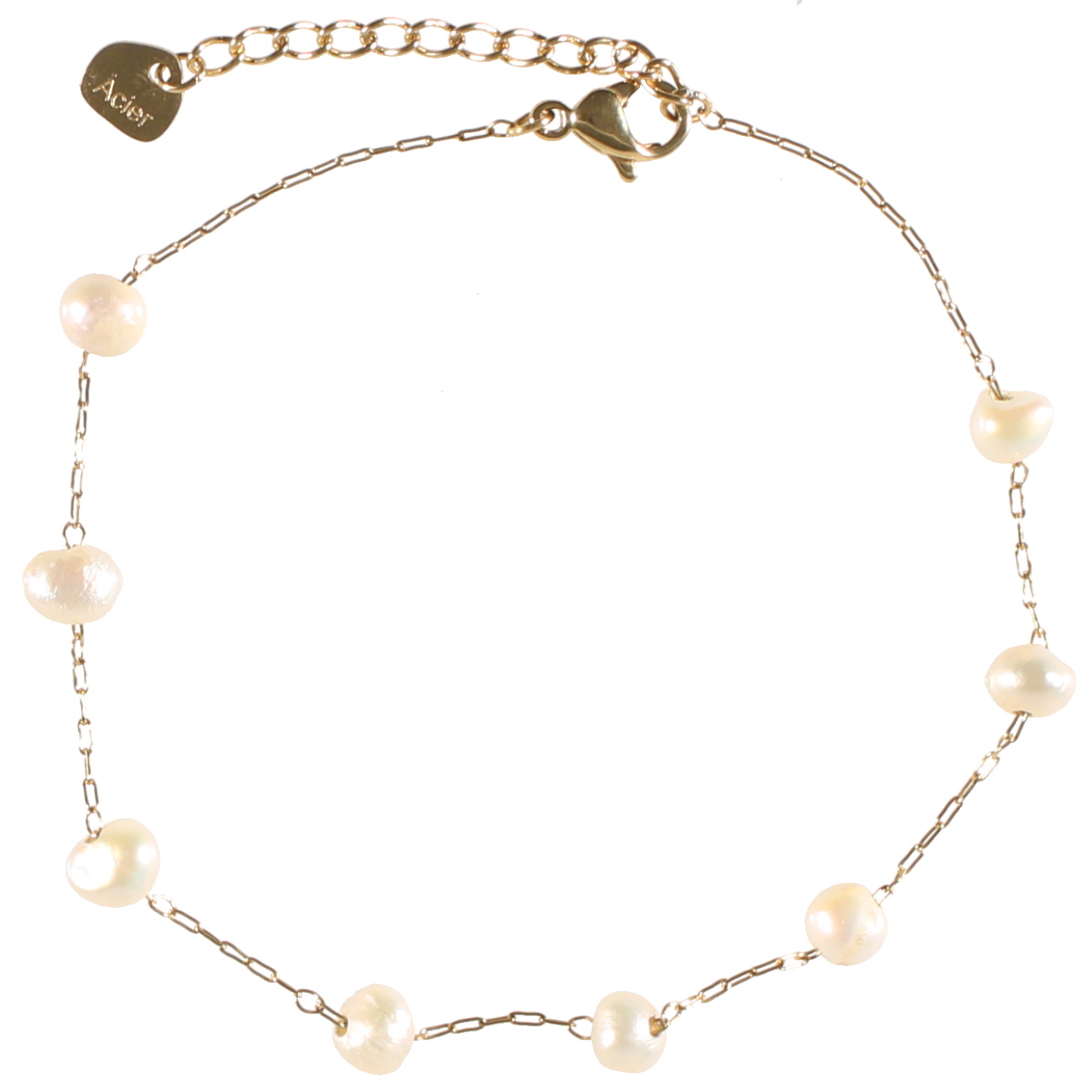 Description Bracelet composé d'une chaîne en acier doré et perles de nacre. Fermoir mousqueton avec 3 cm. Longueur 18+3 cm [Guide des tailles] Largeur 10 mm Matière(s) Acier , Nacre . L'acier utilisé dans la bijouterie existe sous plusieurs qualités. Nous utilisons principalement la qualité 316L, qualité qui est utilisée en chirurgie. Cet acier est donc inoxydable et reste très résistant. Fermoir Mousqueton Couleur(s) dominante(s) Blanc , Doré Public Adolescent , Adulte . Genre Femme , Fille . Saison Eté , Printemps . Collection Seaside Cliquez sur une matière, un thème, une couleur ou une collection pour voir tous les articles associés.