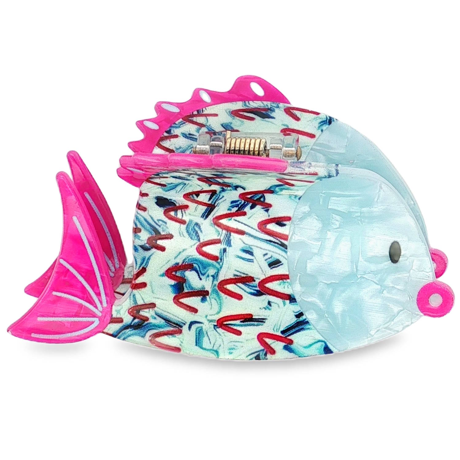 Description Cette pince à griffes ne se contente pas de maintenir vos cheveux ; elle apporte une véritable touche artistique et ludique à votre coiffure. Son design s'inspire de l'univers marin avec une esthétique rétro et colorée. Une forme de poisson stylisée, tout en rondeur, avec des détails en relief pour les nageoires et la queue. Le corps présente un motif abstrait mélangeant des nuances de bleu azur, de blanc nacré et de touches rouges évoquant des écailles ou des courants marins. Cliquez sur une matière, un thème, une couleur ou une collection pour voir tous les articles associés.