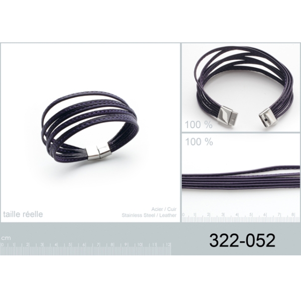 Description Bracelet en acier et cuir. Violet. 6 rangs. Longueur 19 cm [Guide des tailles] Largeur 11 mm Matière(s) Acier , Cuir . L'acier utilisé dans la bijouterie existe sous plusieurs qualités. Nous utilisons principalement la qualité 316L, qualité qui est utilisée en chirurgie. Cet acier est donc inoxydable et reste très résistant. Fermoir A pression Couleur(s) dominante(s) Violet Public Adulte . Genre Femme . Saison Indémodable . Cliquez sur une matière, un thème, une couleur ou une collection pour voir tous les articles associés.