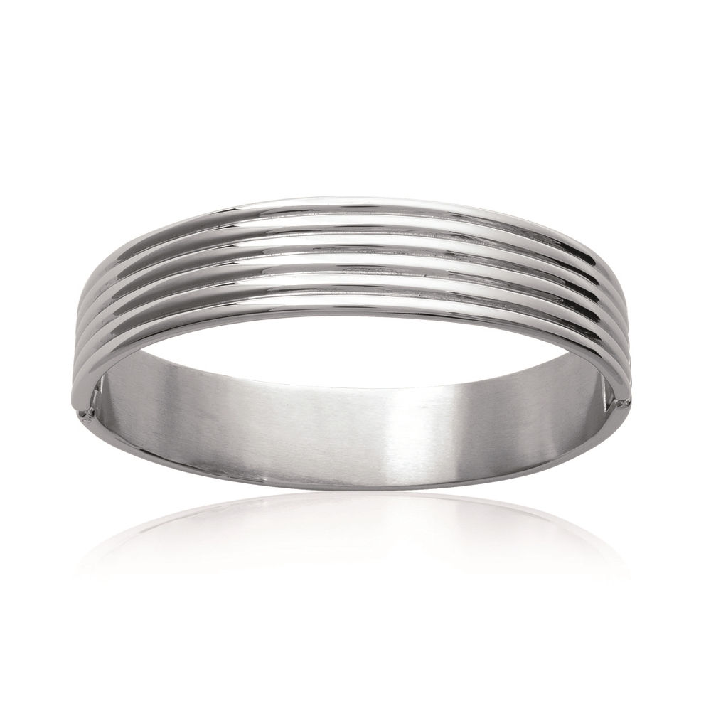 Description Bracelet jonc rigide en acier avec ouverture. Largeur 15 mm Diamètre 62 mm [Guide des tailles] Matière(s) Acier . L'acier utilisé dans la bijouterie existe sous plusieurs qualités. Nous utilisons principalement la qualité 316L, qualité qui est utilisée en chirurgie. Cet acier est donc inoxydable et reste très résistant. Fermoir Autre Couleur(s) dominante(s) Argenté Public Adulte . Genre Femme . Saison Indémodable . Cliquez sur une matière, un thème, une couleur ou une collection pour voir tous les articles associés.