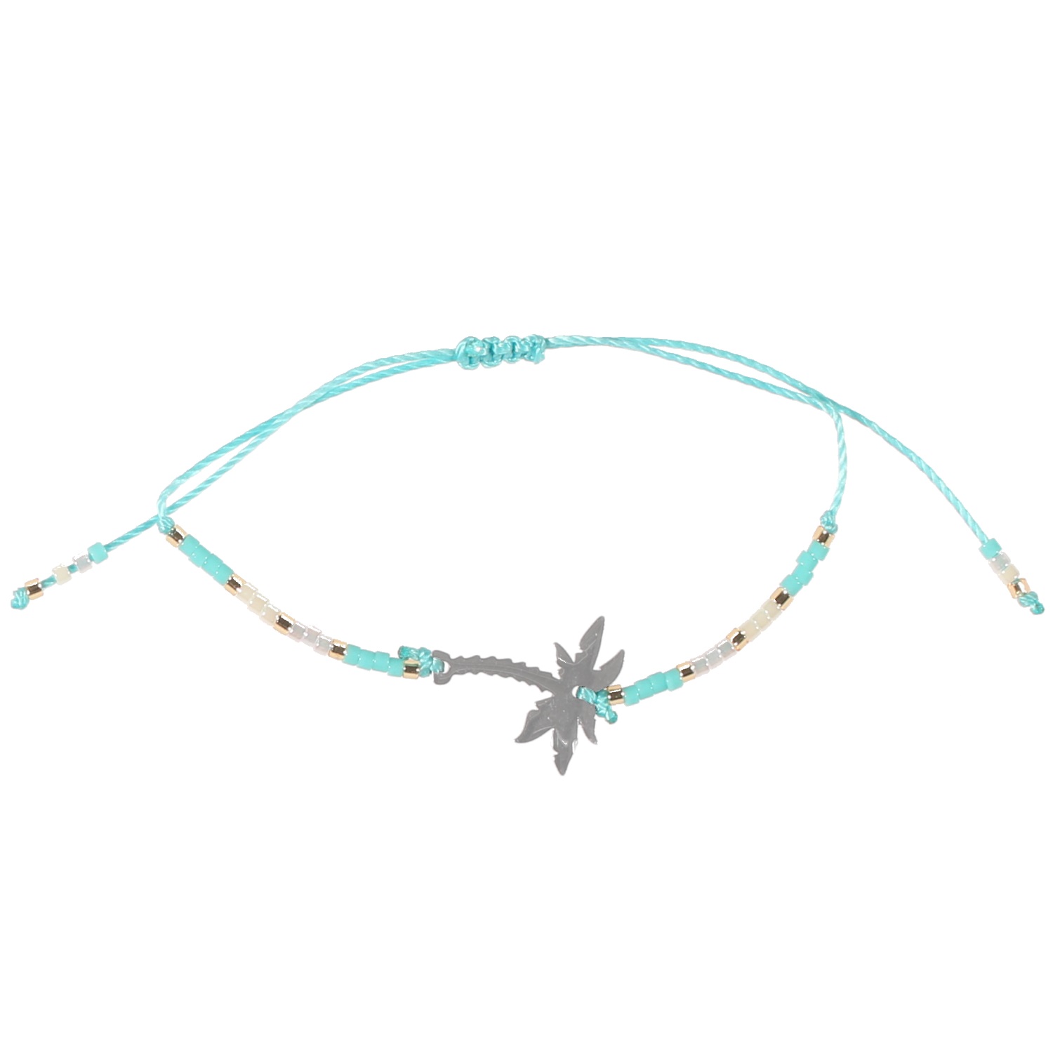 Bracelet Palmier en acier, pierres synthétiques et textile. Arbre Cordon Palmier  Adolescent Adulte Femme Fille Indémodable Nature
