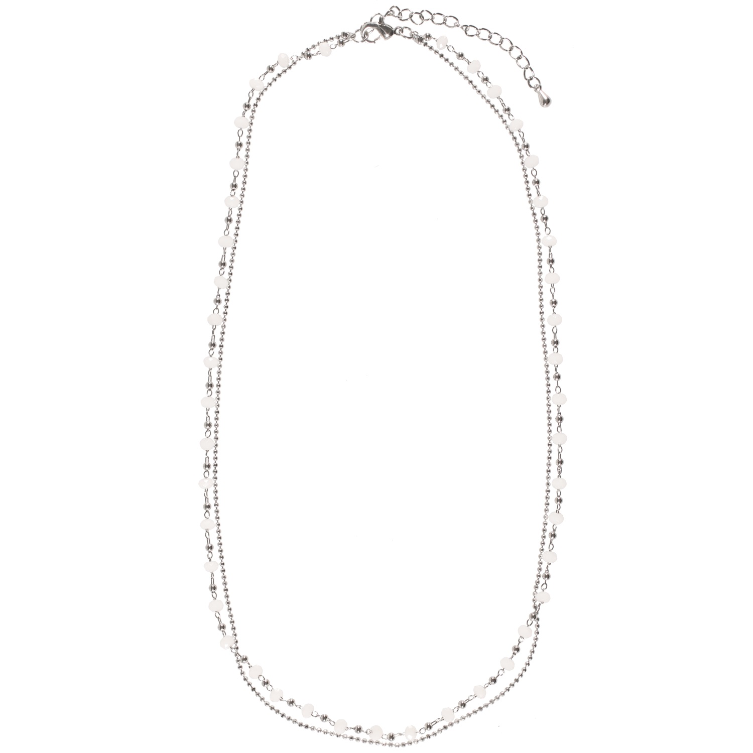 Description Collier fantaisie deux rangs en métal argenté et pierres de couleur. Cliquez sur une matière, un thème, une couleur ou une collection pour voir tous les articles associés.