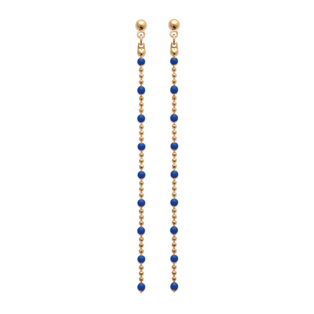 Description Boucles d'oreilles pendantes en plaqué or et perles en émail. Largeur 2 mm Hauteur 68 mm Matière(s) Email , Plaqué or . Nos bijoux en plaqué or sont faits sur une base de laiton et recouverts d'or 18 carats à 3 microns sans dispersion. Cela signifie que nous garantissons 3 microns d'or sur n'importe quelle partie du bijou. Sur la plupart de nos bijoux empierrés, nous montons à 5 microns d'or 18 carats. Pour finir, nous faisons également une finition avec de l'or 24 carats afin de donner un plus bel éclat à nos bijoux. Fermoir Tiges poussettes Couleur(s) dominante(s) Bleu , Doré Public Adolescent , Adulte . Genre Femme , Fille . Saison Indémodable . Collection Zeste d'été Rayon en magasin C46 Cliquez sur une matière, un thème, une couleur ou une collection pour voir tous les articles associés.